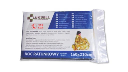 Koc ratunkowy termiczny - folia termiczna NRC srebrno-złota 160x200 cm 10 sztuk