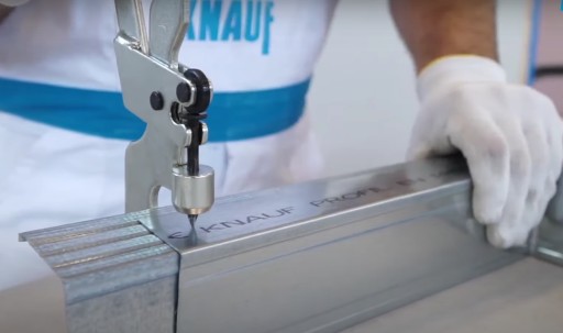 Wszyscy monterzy suchej zabudowy wiedzą, że słabym punktem jest skręcanie profili wkrętami, tzw. „pchełkami”. To proces czasochłonny i niewygodny. Dodatkowo pchełka na profilu tworzy zgrubienie i po przykręceniu płyty może powstać na niej nierówność lub płyta może pęknąć. Wykorzystując Zaciskarkę do profili ułatwiamy sobie pracę i eliminujemy ten problem - połączenia można wykonać szybko i bez zgrubienia. Knauf Zaciskarka do profili pozwala bez użycia wkrętów połączyć profile w systemach suchej zabudowy.