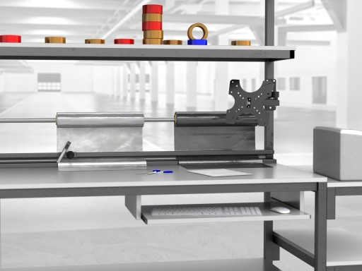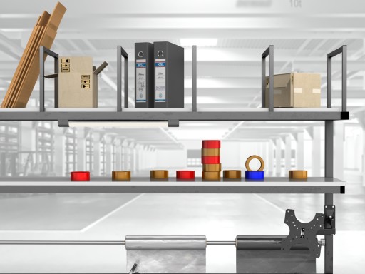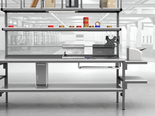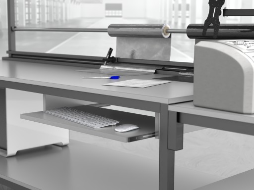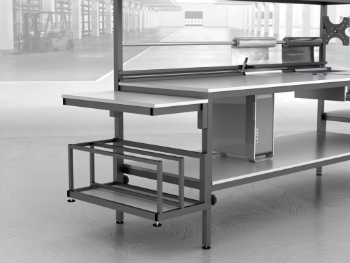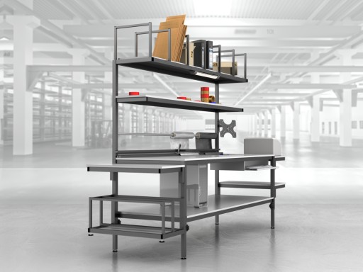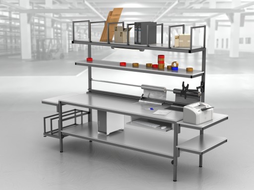 Wysokiej jakości stół warsztatowy do pakowania paczek wykonany z profili metalowych spawanych w stabilną bryłę.