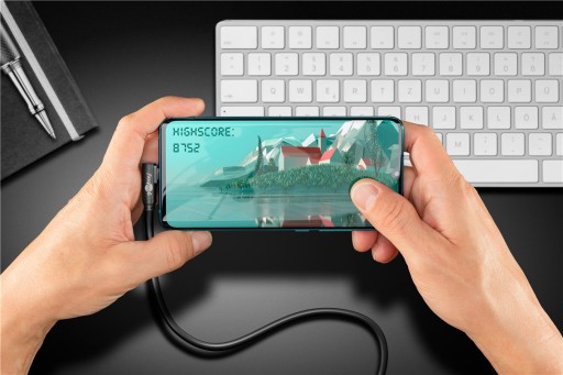 Kabel USB-C - USB-A 3.2 Gen 1, nadaje się do urządzeń z gniazdem USB-C. Wersja kątowa, maksymalna wygoda przy trzymaniu np. smartfona w pozycji horyzontalnej / poziomej.