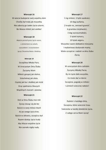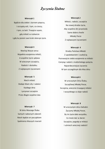 Pudełko zawiera imiona Państwa Młodych jak i również osób wręczających prezent. Do wyboru maja Państwo również dużą ilość życzeń ślubnych. Można przesłać własne.