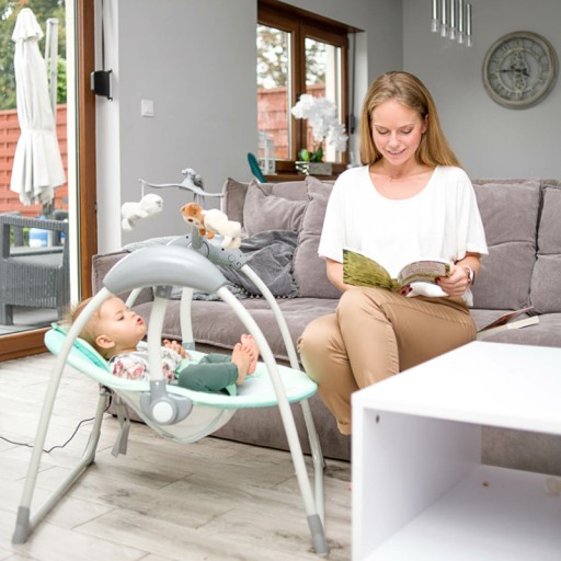 - 5 prędkości huśtania - powtarzające się kołysanie uspokoi dziecko lub da mu energię do zabawy