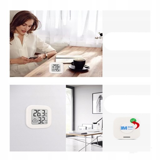 Wyposażona w duży, czytelny wyświetlacz LCD, który wskazuje wszystkie najważniejsze pomiary oraz ogólny komfort w pomieszczeniu. Wygodny montaż dzięki taśmie samoprzylepnej na odwrocie obudowy.
