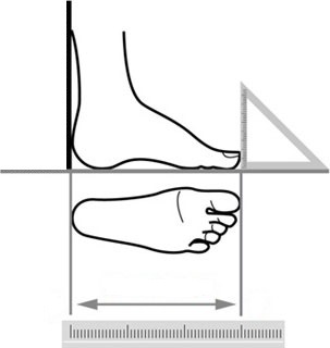 - Zapisz wynik pomiaru, następnie dodaj do niego 3-5 mm (aby obuwie było wygodne, umieszczona w obuwiu wkładka powinna być dłuższa od stopy o 3-5 mm).