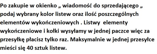 Kolor listew może nieznacznie różnić się od tego jaki widzisz na ekranie telefonu lub komputera, wynika to np z ustawień jasności ekranu , jakości monitora lub innych filtrów dostępnych w urządzeniu.