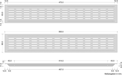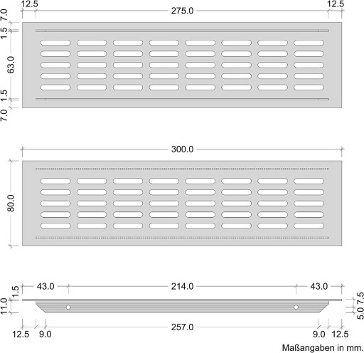 Kratka wentylacyjna prostokątna do wlotu – wcieranie lub przyklejanie w drewnie lub metalu – wycięcie: 257 x 45 mm – wyjątkowo szybki montaż dzięki ukośnemu frezowaniu na rowku.