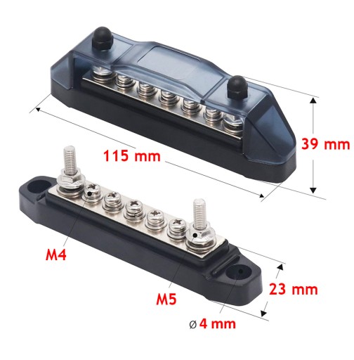 ПОЛОСКА МАССОВОГО БЛОКА ШИНЫ 150А ВИНТЫ 2 x M5 5 x M4