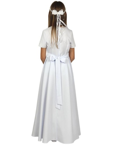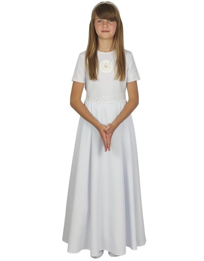 Nieskazitelnie biała alba o sukienkowym kroju to wyjątkowy strój dla dziewczynki przystępującej do Pierwszej Komunii Świętej.