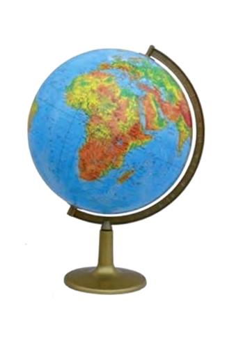 Globus 420 mm mapa fizyczna, plastikowa niska stopka, cięciwa aluminium.