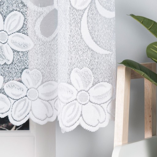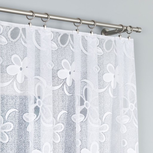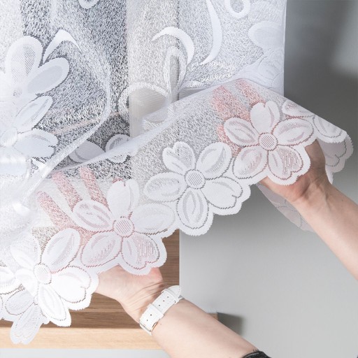Firana z eleganckim kwiatowym wzorem, będzie efektowną ozdobą Twoich okien w kuchni, salonie oraz pokoju.