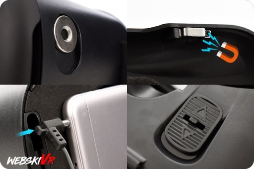 - Zapięcie magnetyczne. Mocne magnesy zamykają klapę gogli, bezpiecznie utrzymując Twój telefon.