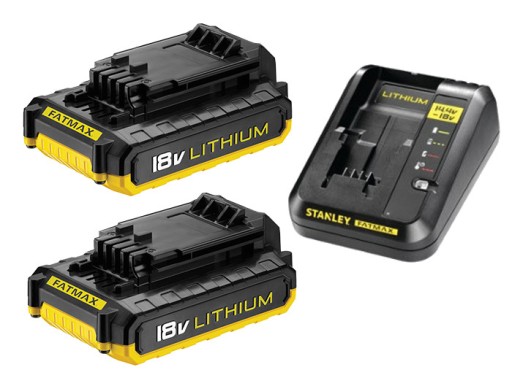 - ✅Wiertarko – wkrętarka Stanley Fatmax wyposażona w 2 akumulatory Li-Ion 18V o pojemności 2,0Ah.