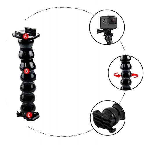 Zestaw to bardzo dobrej jakości zamiennik oryginalnego produktu Gopro Jaws Flexible Clamp.
