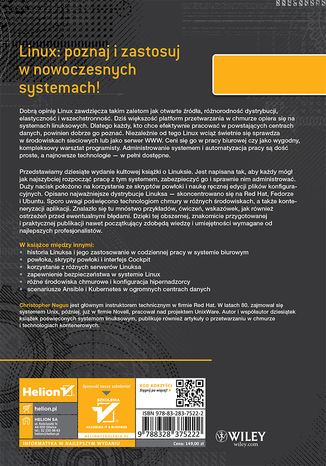 Dobrą opinię Linux zawdzięcza takim zaletom jak otwarte źródła, różnorodność dystrybucji, elastyczność i wszechstronność. Dziś większość platform przetwarzania w chmurze opiera się na systemach linuksowych. Dlatego każdy, kto chce efektywnie pracować w powstających centrach danych, powinien dobrze go poznać. Niezależnie od tego Linux wciąż świetnie się sprawdza w środowiskach sieciowych lub jako serwer Ceni się go w pracy biurowej czy jako wygodny, kompleksowy warsztat programisty. Administrowanie systemem i automatyzacja pracy są dość proste, a najnowsze technologie - w pełni dostępne.