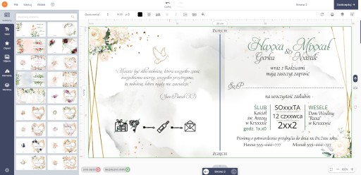 - Kreator nie umożliwia personalizacji listy gości dla każdej sztuki.