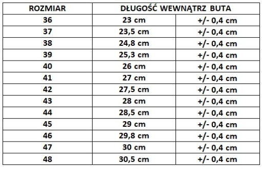 - Rozmiar 38 –długość wkładki ok. 24,8 cm