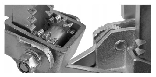 Zębatka umiejscowiona mimośrodowo nie dopuszcza do cofnięcia się szalunku zacinając się na pręcie.