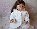 Płaszczyk został uszyty z białego polarku podszyty pikowaną podszewką z warstwą ociepliny. Ubranko zapinane jest na rzepy, posiada kaptur chroniący przed wiatrem ozdobiony satynowymi różami. Idealnie współgra z sukienkami oraz czapeczkami z naszej kolekcji.