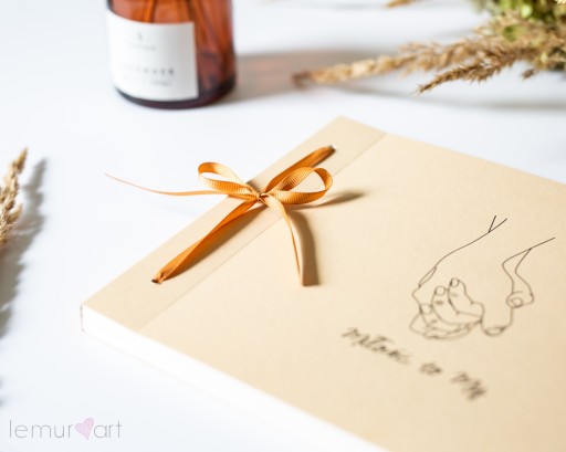 Album charakteryzuje się okładką w beżowym kolorze oraz grubymi kartami w kolorze białym, związanymi ze sobą elegancką wstążką.