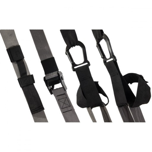Taśmy wykorzystywane są w sporcie wyczynowym, w przygotowaniu sportowym, fitness jak również na potrzeby ćwiczeń domowych oraz rehabilitacji. Za pomocą taśm wzmocnisz mięśnie wszystkich partii ciała, poprawisz stabilność stawów, gibkość, wydolność oraz postawę. Zaletą taśm treningowych EB FIT jest ogromna wytrzymałość, zapewniająca trwałość i bezpieczeństwo podczas użytkowania. Ćwiczyć za pomocą pasów możesz wszędzie. Cały zestaw waży mniej niż kilogram, mieści się w małej torebce, a jego montaż jest niezwykle szybki i prosty. Potrzebujesz tylko miejsca, by go stabilnie zawiesić. Na zmianę ćwiczenia wystarczy około 15 sekund, dzięki czemu możesz maksymalnie wykorzystać swój czas przeznaczony na ćwiczenia. Pasy o szerokości 3,8 cm są wykonane z materiałów najwyższej jakości, szyte mocną nicią, gwarantującą bezpieczny trening. Wytrzymałe, metalowe klamry pozwalają na łatwe dostosowanie długości pasów do twojego wzrostu. Uchwyty na ręce i nogi pokryto miękką pianką.