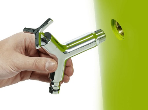 Woda może być pobierana przy pomocy kranika lub uniwersalnego zestawu węży.