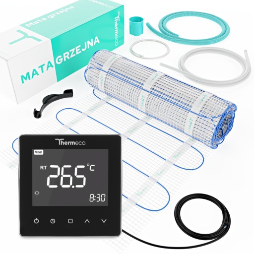 Jest to mata nowej generacji, a jej doskonałe właściwości wynikają z zastosowania materiałów (teflon i poliamid), a także nowoczesnej technologii produkcji. Wysoka moc jednostkowa maty Thermeco, gwarantuje najwyższą skuteczność działania elektrycznego systemu ogrzewania podłogowego.