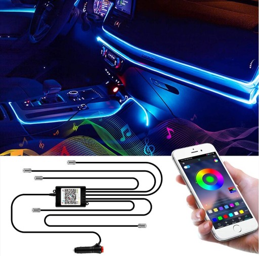 Oświetlenie wnętrza samochodu neon LED Oświetlenie otoczenia Listwa świetlna Sterowanie za pomocą aplikacji