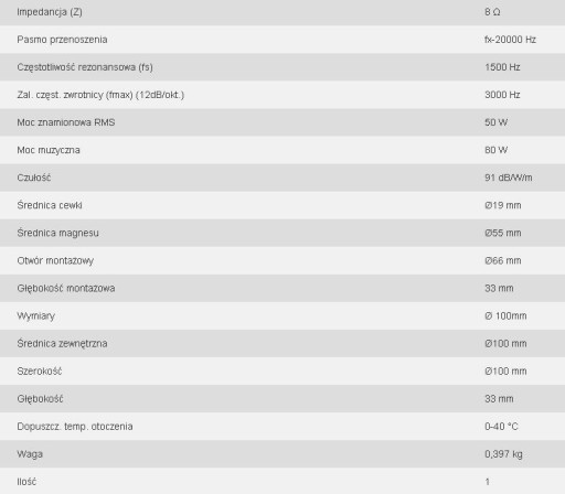 Kopułkowy głośnik wysokotonowy HiFi, 50WRMS, 8Ω