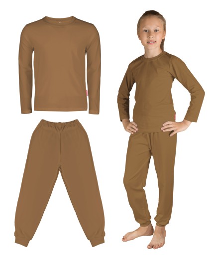 BRĄZOWY DZIECIĘCY KOMPLET - BAWEŁNIANA BLUZKA I SPODNIE 116