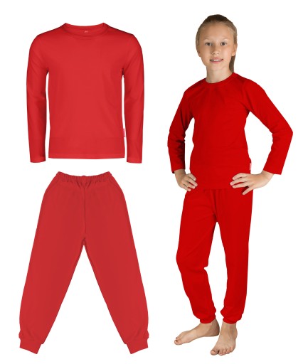 CZERWONY DZIECIĘCY KOMPLET - BAWEŁNIANA BLUZKA I SPODNIE 128
