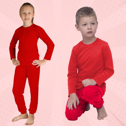 CZERWONY DZIECIĘCY KOMPLET - BAWEŁNIANA BLUZKA I SPODNIE 134