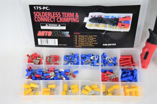 14AWG (5) 12-10AWG29 Złącza żeńskie (12) 22 -18AWG (12) 16-14AWG (5) 12-10AWG (1) 9 ”zaciskarka do drutu (1) plastikowa