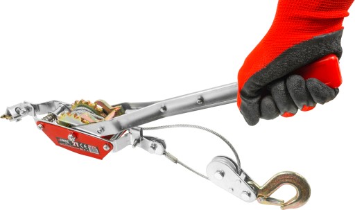 Wyciągarka (wciągarka, przeciągarka, naciągarka) linowa z napędem ręcznym służy do transportowania ładunków w płaszczyźnie poziomej. Została wykonana ze stalowej liny oraz dźwigni napędzającej bęben z mechanizmem zapadkowym . Wyciągarka została wykonana z wysokiej jakości materiałów o odpowiedniej trwałości - stal konstrukcyjna, odlewane haki ze sprężynami zwrotnymi.