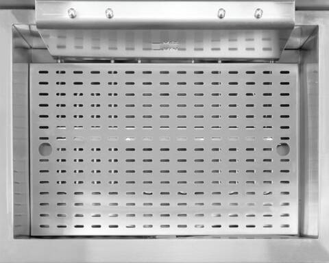 o wymiarze 490x280x100mm z bocznymi uchwytami. Natomiast specjalne zaczepy umożliwiają powieszenie kosza bezpośrednio nad zbiornikiem, minimalizując ryzyko zachlapania olejem blatu roboczego. Dzięki temu znacznie zwiększa się czystość stanowiska pracy i minimalizuje czas potrzebny na czyszczenie. Dodatkowo smażalnik posiada boczny ociekacz, na którym można odstawić do ostygnięcia i ocieknięcia usmażone produkty.