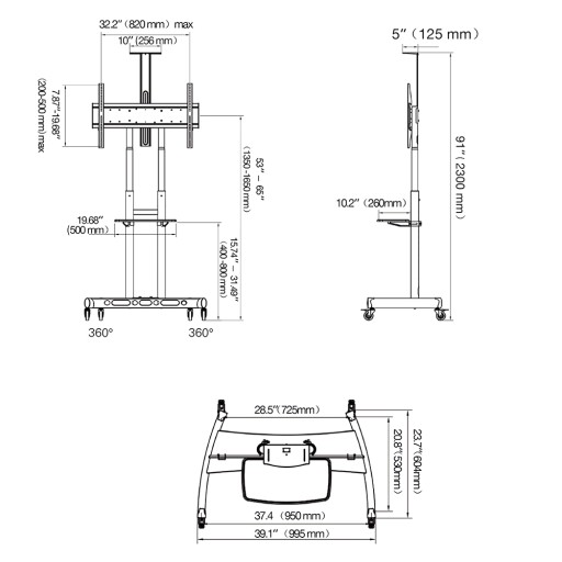 Мобильная ТВ-СТОЙКА для ЖК-телевизора 55–90 футов