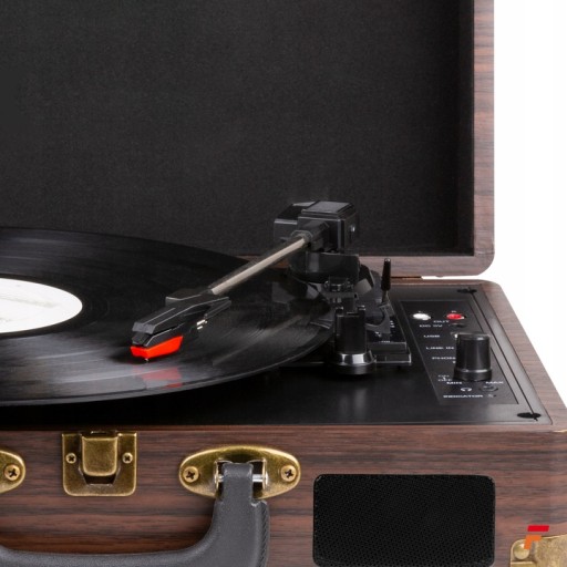 Ten gramofon ma wiele możliwości, na przykład możesz podłączyć przez wejście AUX zewnętrzne źródło dźwięku, jak i podłączyć zewnętrzne głośniki dla optymalnego dźwięku.