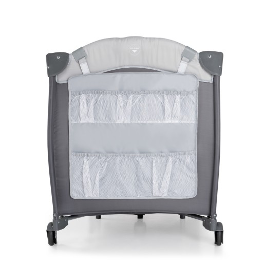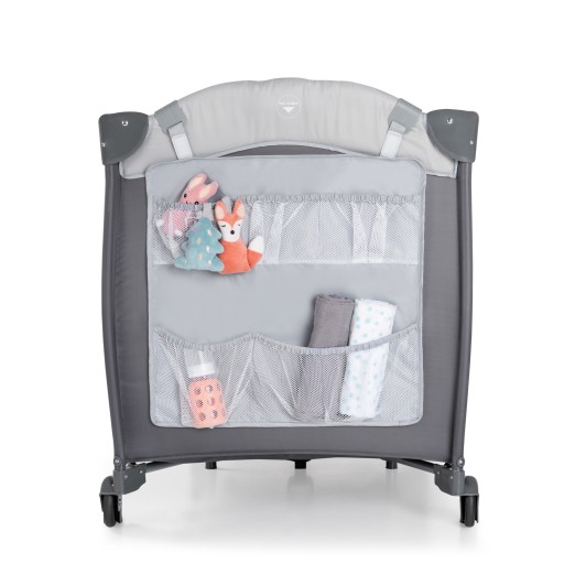 Hang Me ma uniwersalne zastosowanie i nadaje się również do łóżeczek turystycznych, które są podobne do naszych. Kieszeń na przybory jest przymocowana dwoma haczykami do łóżka. Można go wytrzeć wilgotną ściereczką i delikatnie odchylić.