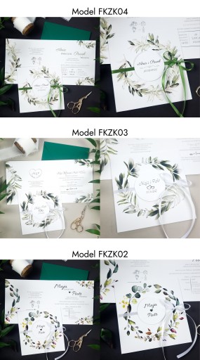 - Pewność że do zaproszeń dokupią Państwo inne elementy papeterii ślubnej (winietki, zawieszki, menu, nr stołów, magnesy, księgi gości, pudełka na koperty itp.) w motywie graficznym spójnym z zaproszeniem