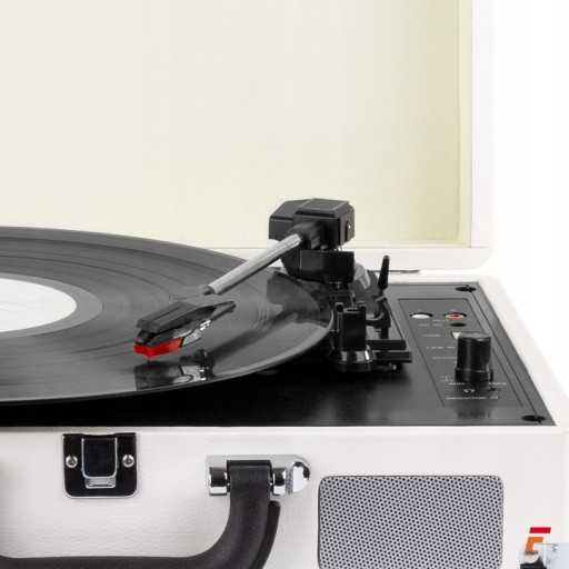 Stylowy gramofon Fenton RP115C z Bluetooth i USB. Gramofon stylizowany na starą walizkę to, stylowy dodatek do domu. Niewielka waga, wraz z wykończeniem z białej skóry, sprawia że Fenton RP115 przyciąga wzrok każdego. To niepozorne urządzenie, ukrywa więcej niż mógłbyś sobie wyobrazić. Fenton, oferuje funkcje automatycznego zatrzymywania, regulowaną prędkość, łączność Bluetooth, złącze USB, oraz wejście AUX.
