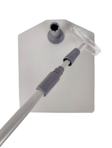 - aluminiowy teleskop w kolorze szarym wraz z mocowaniem ramki( teleskop złożony ma wysokość ~300mm a po rozsunięciu ~600mm)