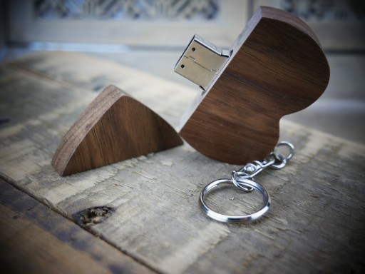 DREWNIANY PENDRIVE USB 32 GB - SERCE BRELOK