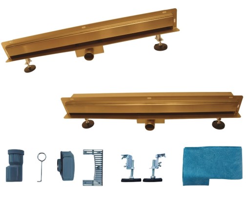 ŚCIENNY ODPŁYW LINIOWY - ZŁOTY - 2w1 POD PŁYTKĘ - 80 cm GŁĘBOKI OSADNIK, MONTAŻ 4 CENTYMETRY
