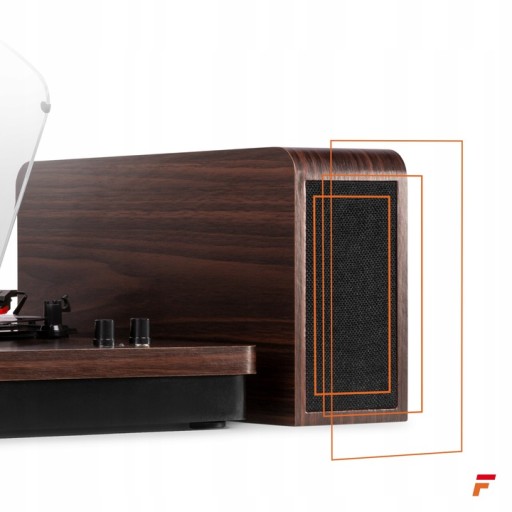 - Ręcznie robiony drewniany gramofon z 2 pełnozakresowymi głośnikami stereo