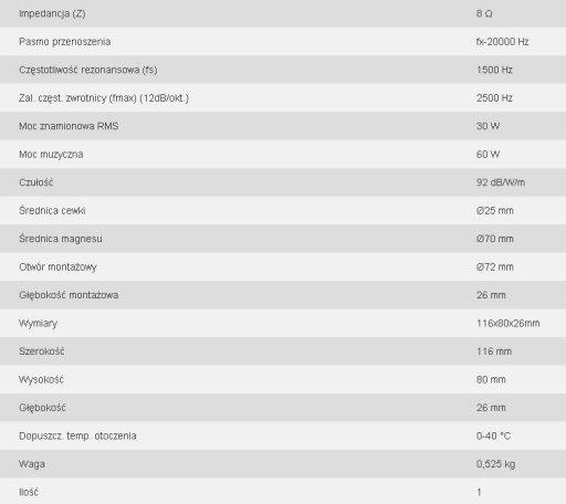 Kopułkowy głośnik wysokotonowy HiFi, 30WRMS, 8Ω