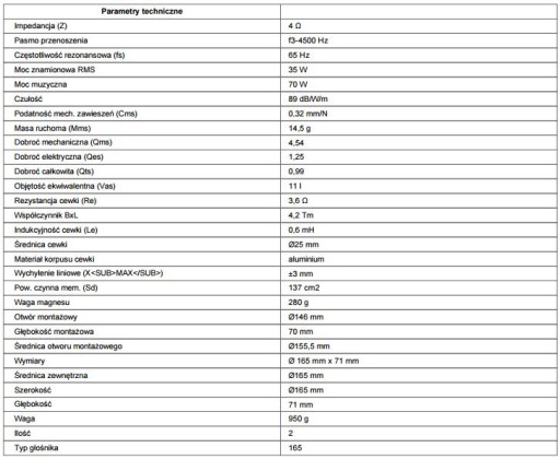 Głośniki typu kick bass Kombinacja nowoczesnego wykończenia z zastosowaniem najlepszych i sprawdzonych materiałów. Specjalna struktura membran polipropylenowych zapewnia dużą sztywność, stabilność i odporność na wilgoć. Para głośników nisko-średniotonowych HiFi, 35W, 4Ω