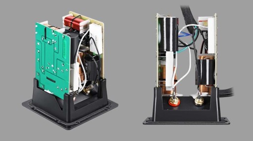 Same cewki drgające są nawinięte z lekkiego drutu aluminiowego pokrytego cienką warstwą miedzi. Zastosowaliśmy tutaj aluminium na dwuwarstwowym karkasie z włókna szklanego, ponieważ jego masa nie zakłóca ruchu przetwornika. Dzięki warstwie miedzi głośnik lepiej wykorzystuje energię magnetyczną wytwarzaną przez układ dwóch magnesów ferrytowych. Większa energia strumienia magnetycznego przekłada się na większa moc - bez poświęcania szybkości i dynamiki.