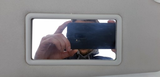 Ogólnie daszek ładny. Czysty co widać na zdjęciach. Lusterko okej choć jak wiadomo ma trochę rysek. Mocowania całe, sprawne. W zestawie śrubki do przykręcenia.
