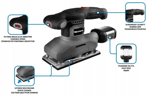 ГРАФИТОВАЯ ШЛИФОВАЛЬНАЯ МАШИНА 260ВТ 90x187MM КОНТЕЙНЕР ДЛЯ БУМАЖНОГО ПЫЛЕСОСА 59G326