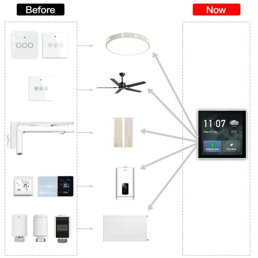 Z panelu możesz sterować urządzeniami Tuya , które są połączone z routerem WiFi, ale także możesz dodać urządzenia ZIGBEE oraz BLE (Bluetooth Low Energy), a ponadto można: