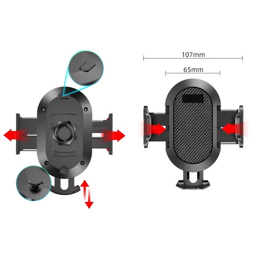 Z tyłu produktu znajduje się przycisk, którego naciśnięcie powoduje automatyczne rozsuwanie się uchwytu. Funkcja ta umożliwia użytkownikowi bardzo komfortową obsługę jedną ręką. Puszczenie przycisku blokuje dalsze rozsuwanie, dzięki czemu telefon będzie stabilnie się trzymać w uchwycie.